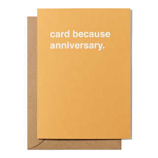 Celebrate surviving another year of shared bed farts, mutual eye-rolls, and questionable life choices. Our anniversary cards say 'I love you' without making you want to throw up in your mouth a bit. Perfect for the happily dysfunctional.