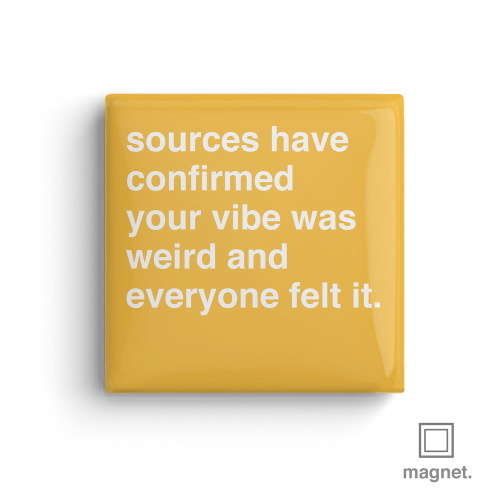 "Sources Have Confirmed Your Vibe Was Weird" Square Fridge Magnet