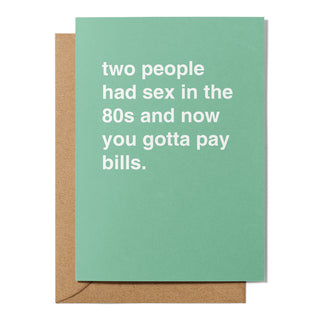 "Two People Had Sex and Now You Gotta Pay Bills" Birthday Card